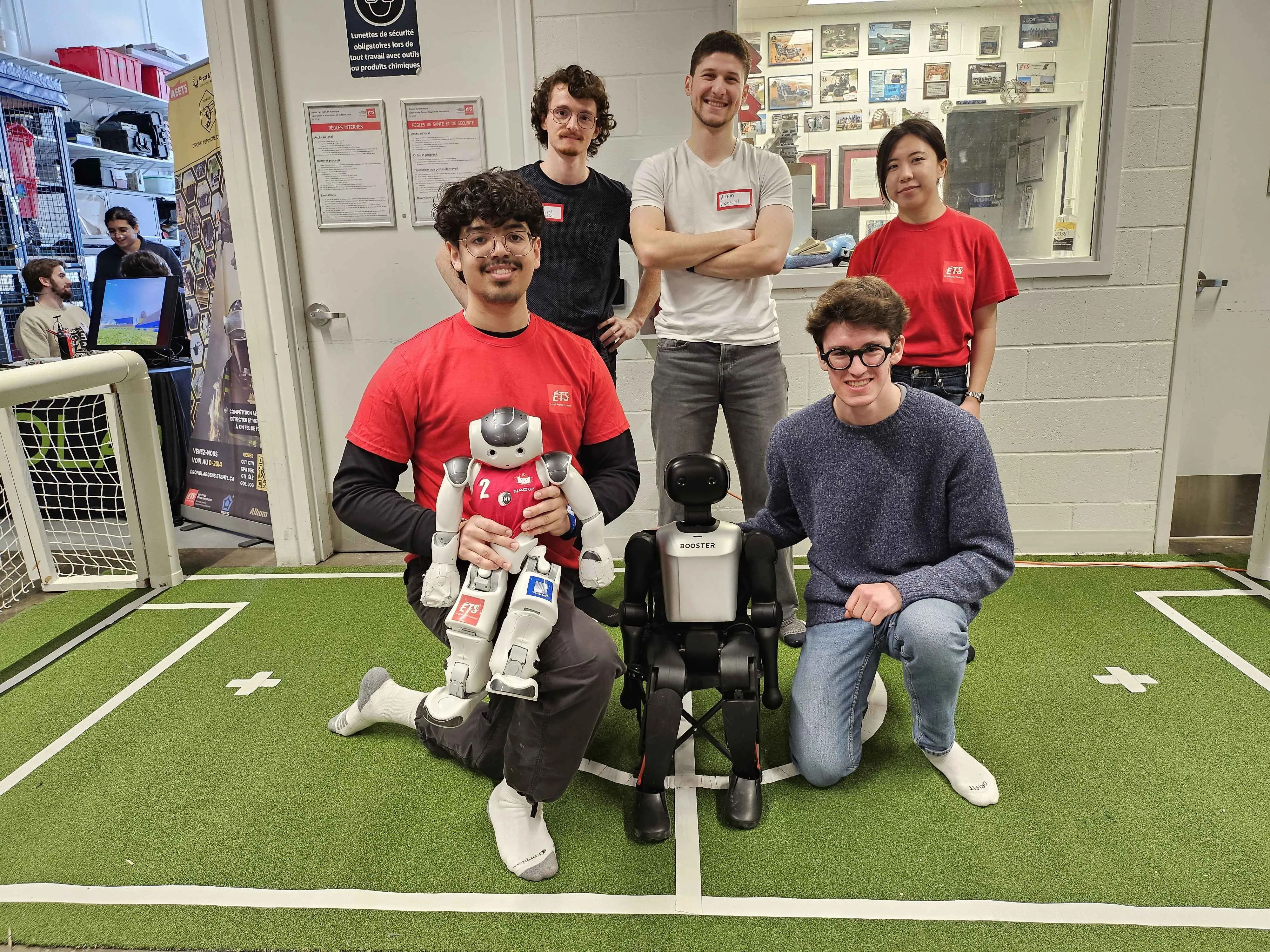 Jonathan Fortin, étudiant en maîtrise avec mémoire sur l’optimisation des déplacements robotiques, ÉTS. Naova a pour vocation la participation aux matchs de soccer robotique lors des épreuves de la plus grande compétition internationale de robots: la Robocup. Lors de ces matchs, des équipes de robots s'affrontent pour marquer un maximum de buts contre l'adversaire. Les robots agissent de manière entièrement autonome, et doivent donc être programmés de manière à pouvoir jouer en équipe sans intervention extérieure. Toutes les équipes sont composées du même robot standard, il faut donc réussir à faire la différence sur le programme dictant son comportement.